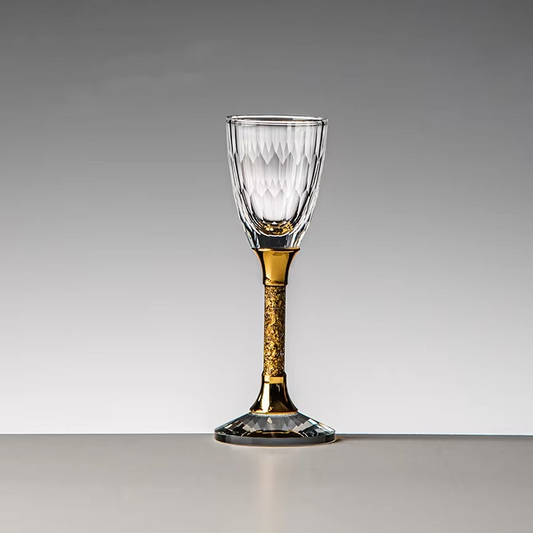 Set of 6 Crystal Liqueur Cup with High-Foot Gold Foil