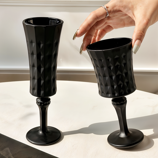 Set of 6 Black Based Wine Glasses with Swan Shaped Carafe & Stainless Infinity Stand